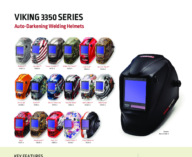 The VIKING 3350 helmet series is our top-of-the-line choice, offering exceptional optics, comfort, and versatility. With our 4C® Lens Technology, you can experience a broadened color range and enhanced hues in both light and dark states. This advanced technology eliminates imperfections and color saturation, providing the clearest view of the base material, arc, and puddle. Moreover, our Perfect 1/1/1/1 Optical Clarity ensures minimal blurriness, distortion, and shade inconsistency, guaranteeing a top-notch viewing experience for welders. Additionally, our helmet boasts an extra large viewing area of 12.5 square inches, allowing for increased operator control and versatility.
